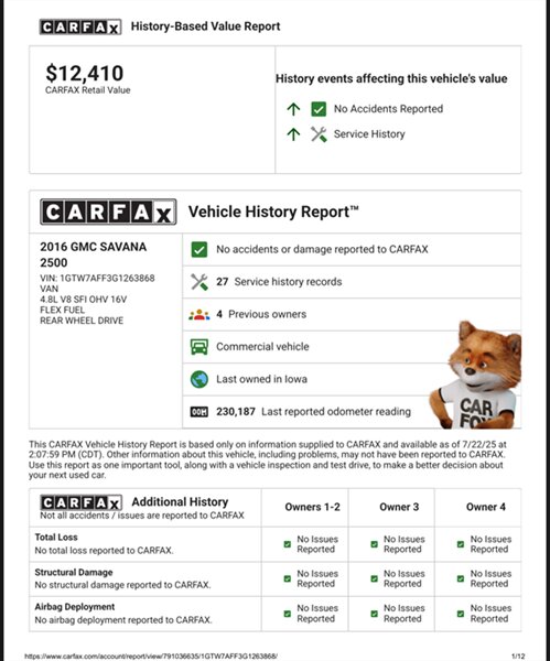 This 2016 GMC Savana 2500 is in excellent overall condition, making it a great choice for those looking for a dependable and spacious vehicle.
